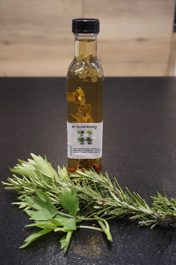 Bringen sie mit unserem Kräuteressig den Geschmack eines ganzen Kräuterbeetes auf den Teller.